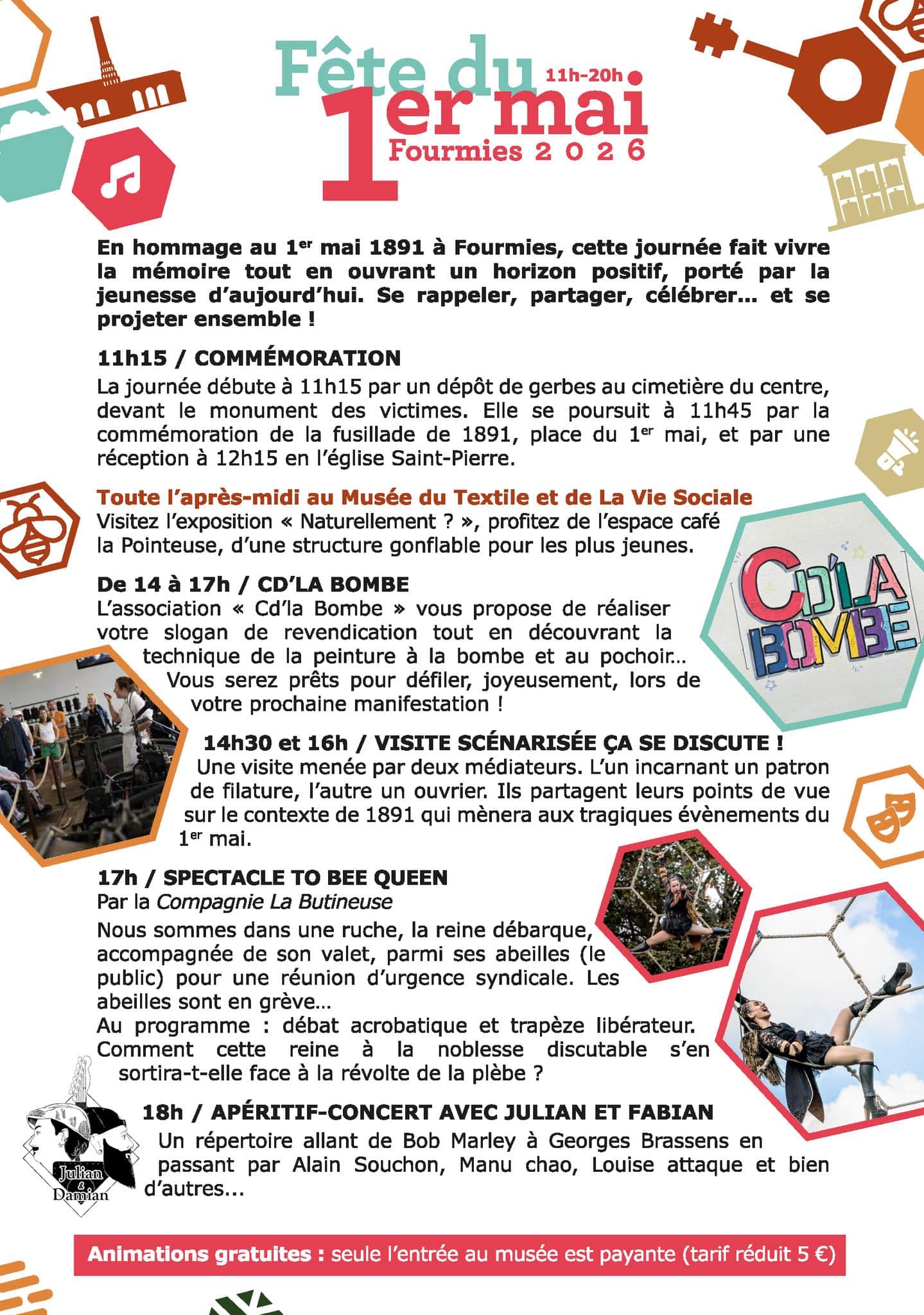 En hommage aux événements du 1er mai 1891, rendez-vous au Musée du Textile et de la Vie Sociale pour un après-midi festif mêlant mémoire, culture et convivialité !