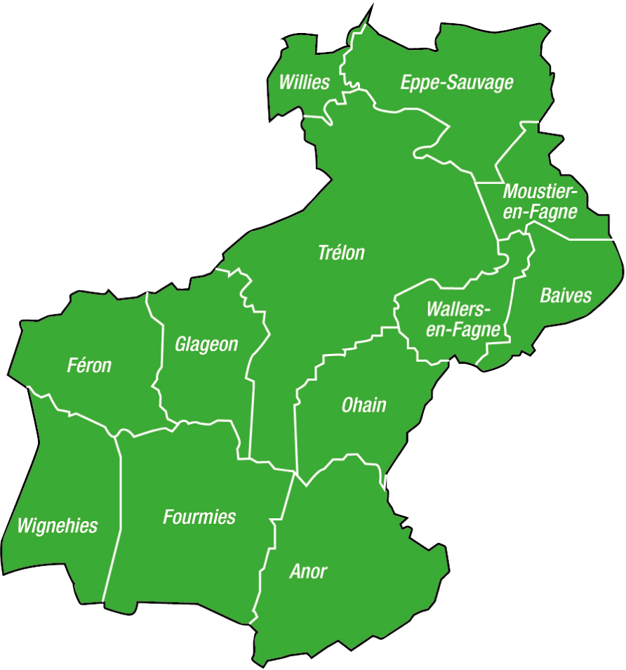 Née en 2014, la Communauté de Communes Sud-Avesnois compte 24 000 habitants répartis sur 12 communes. Elle se compose d’un pôle urbain central, Fourmies, chef-lieu de canton depuis 2014 et d’un réseau de petites villes (Anor, Glageon, Ohain, Trélon, Wignehies) et de villages ruraux (Baives, Eppe-Sauvage, Féron, Moustier-en-Fagne, Wallers-en-Fagne et Willies).