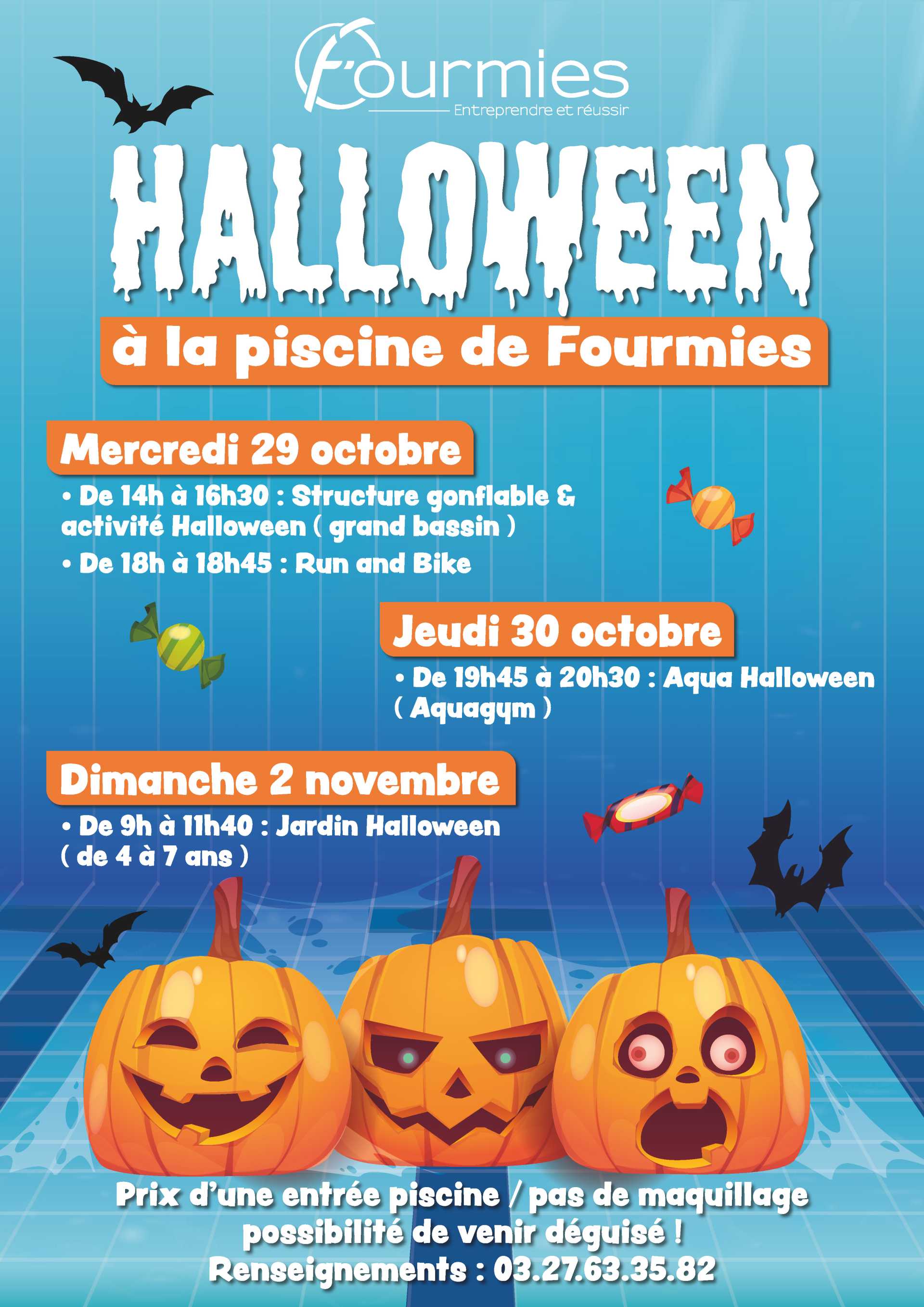 - De 14h à 16h30 : structure gonflable & activité Halloween (grand bassin)