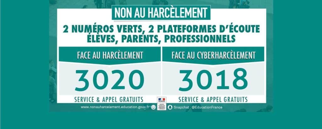 2 numéros verts, 2 plateformes d'écoute élèves, parents, professionnels.